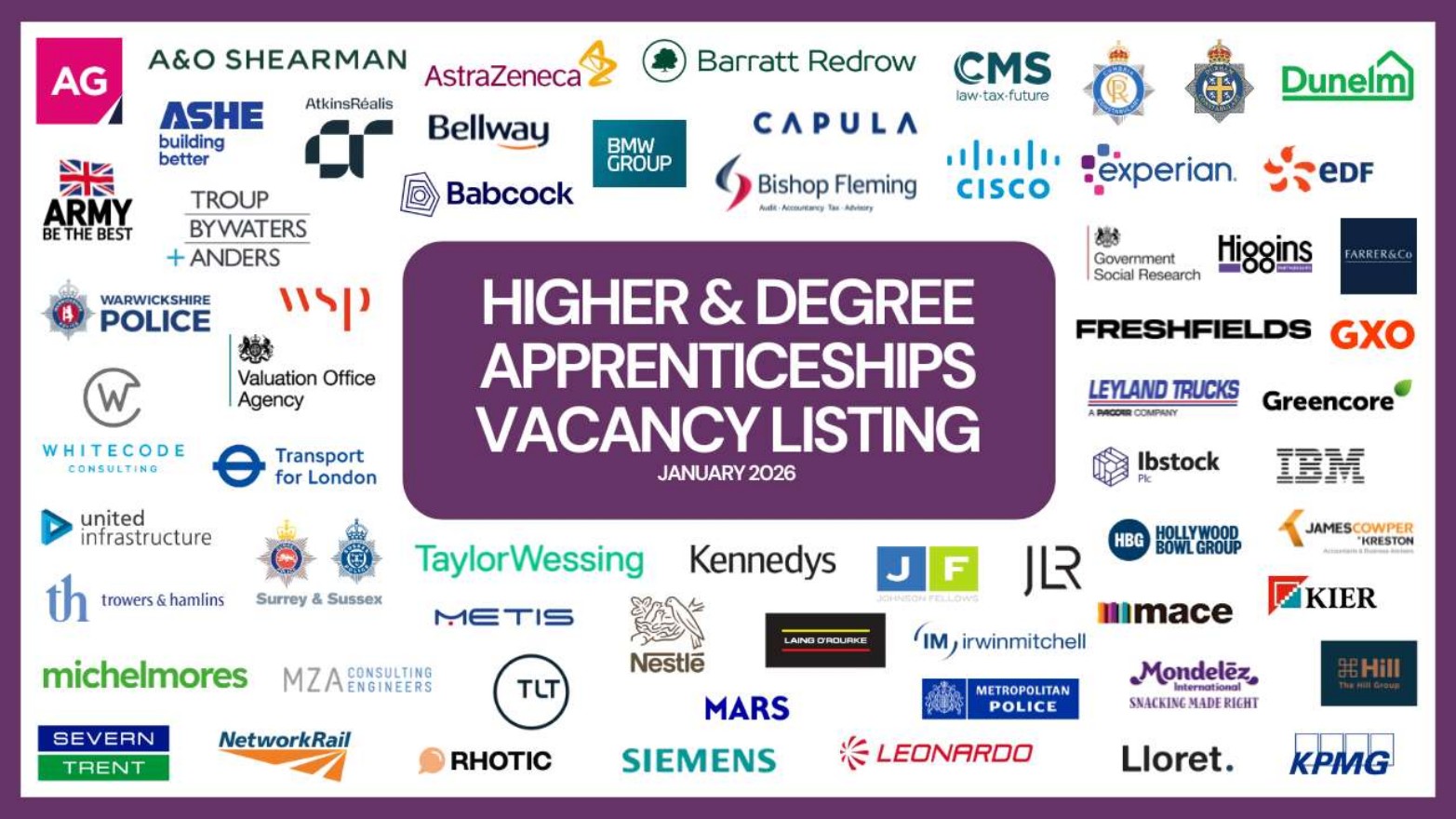 Explore 1,600+ Higher and Degree apprenticeship vacancies from 65+ employers, including EDF, TfL, Babcock, Barratt Redrow, IBM, GXO, KPMG, Metropolitan Police, Bishop Flemming and many more!